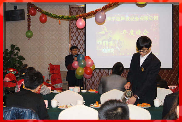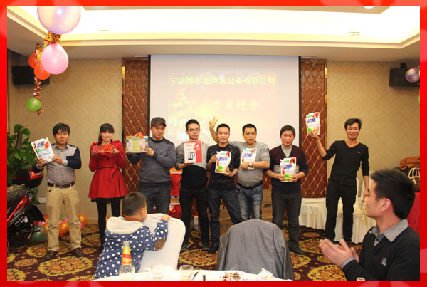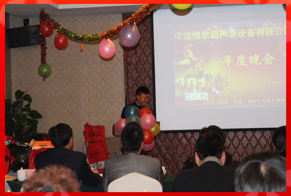 此次年會(huì)由公司行政部門精心策劃,聘請了專業(yè)的主持和音控團(tuán)隊(duì)。公司員工精心布置了會(huì)場、安排各游戲互動(dòng)環(huán)節(jié),財(cái)務(wù)部購置了豐盛的獎(jiǎng)品;使得寧波博爾超聲波設(shè)備有限公司2013年年度晚會(huì)舉辦的成功、歡樂、祥和、圓滿!